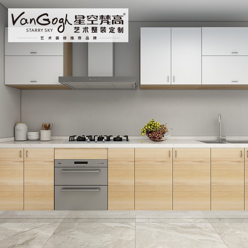 【星空梵高】現(xiàn)代簡(jiǎn)約 石英石臺(tái)面 整體定制櫥柜 巴克卡爾·玉石白+艾格黃橡櫥柜