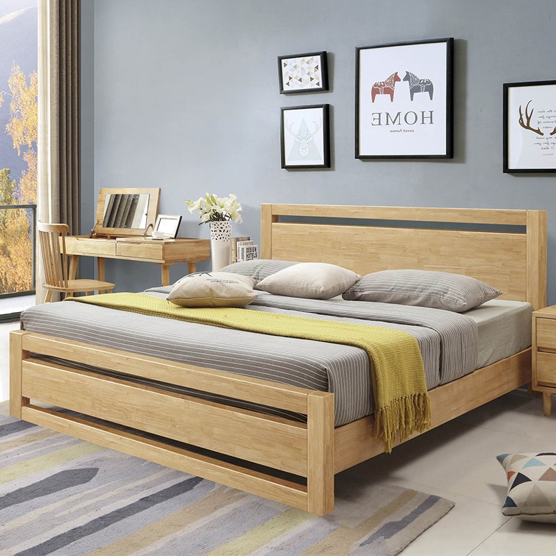 【星空梵高】現(xiàn)代簡(jiǎn)約雙人床實(shí)木床 花好月圓 w02#-180