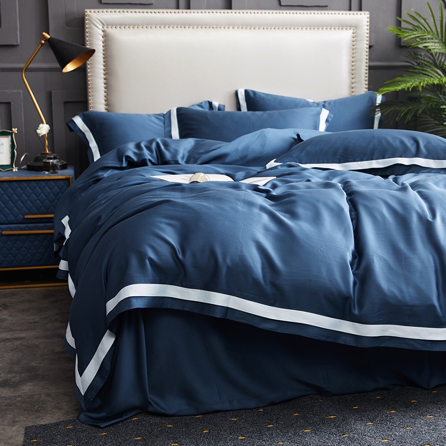 床上用品 純棉四件套 蕾絲工藝 60天絲純色工藝系列 子藍