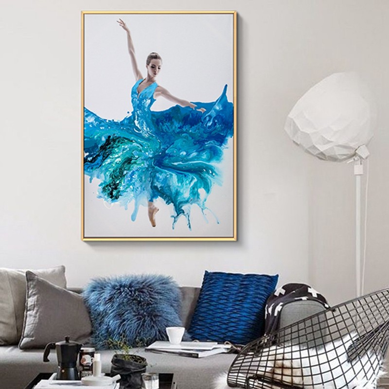 現(xiàn)代簡(jiǎn)約客廳裝飾畫(huà)臥室原創(chuàng)手繪流彩畫(huà)廚房鋁合金框掛畫(huà) 舞者