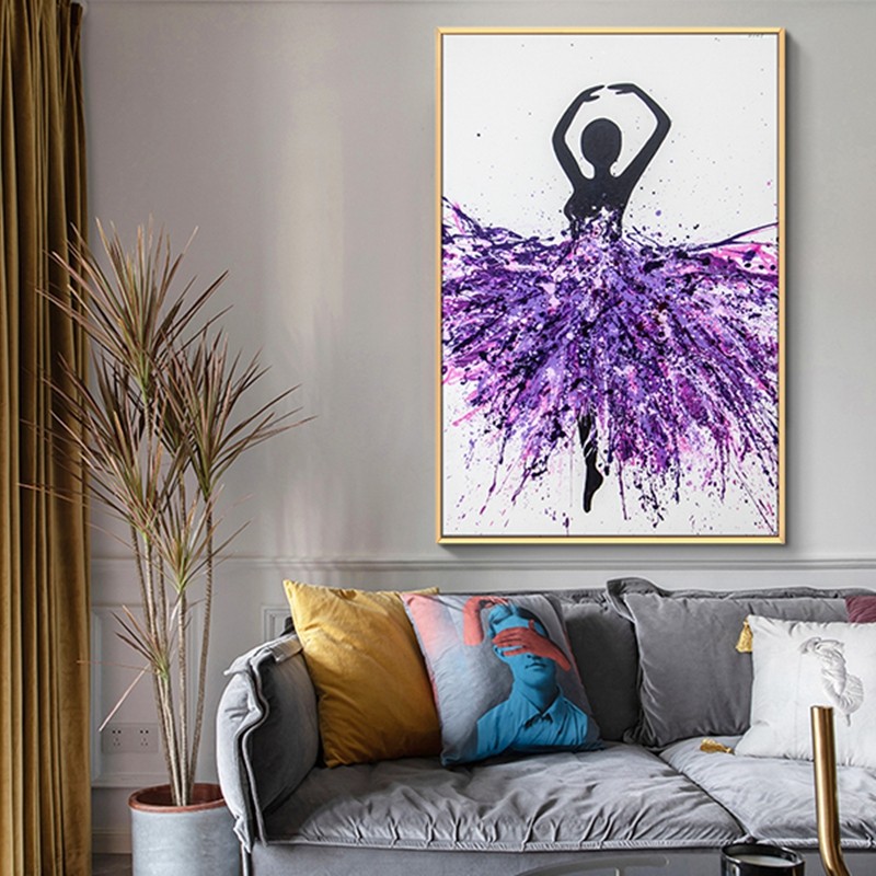現(xiàn)代簡(jiǎn)約客廳裝飾畫(huà)臥室原創(chuàng)手繪流彩畫(huà)廚房鋁合金框掛畫(huà) 紫裙子